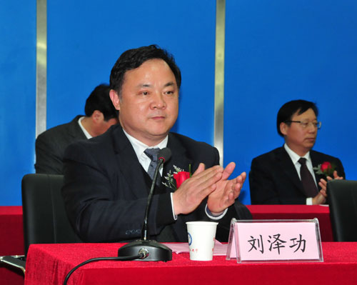 合肥煤炭设计研究院院长杨裕官(左)和校长颜事龙教授为“安徽理工大学煤与瓦斯共采实验室”揭牌