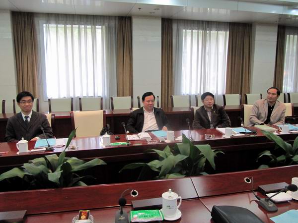 刘泽功副校长(左二)、孟祥瑞副校长(右二)指导教材编写