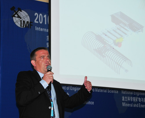 会上,波兰AGH理工大学校长代表斯塔尼斯瓦夫•纳乌拉特教授首先阐述了房柱式开采铜矿封闭采空区对气候条件的影响,之后安徽理工大学副校长刘泽功教授就松软低透气性高瓦斯煤层卸压增透抽采瓦斯技术新进展发表了自己的看法,波兰AGH理工大学采矿与地质工程学院院长彼得•查亚教授、波兰AGH理工大学校长代表斯塔尼斯瓦夫•纳乌拉特教授、塞巴斯提安•那皮拉伊详细介绍了矿井瓦斯临生态利用技术,西安科技大学伍永平教授讲解了富水软岩环境斜井围岩结构耦合控制技术及应用,来自波兰的日比格涅夫•拉克、杰西•斯塔西察、日比格涅夫•布尔坦就波兰采煤业的未来展望给大家做了生动的说明,澳大利亚联邦科学与工业研究院勘探与采矿研究分院主任研究员薛生博士阐述了煤与瓦斯突出的耦合模拟器数值建模,山东科技大学程卫民教授就综采放顶煤工作面采空区自燃三维数值模拟发表了自己的看法,波兰杰西•斯塔西察详细介绍了波兰煤矿长壁开采工作面准备掘进头加固技术,最后中国矿业大学李希建教授讲解了煤甲烷吸附与解吸的MC模拟研究。