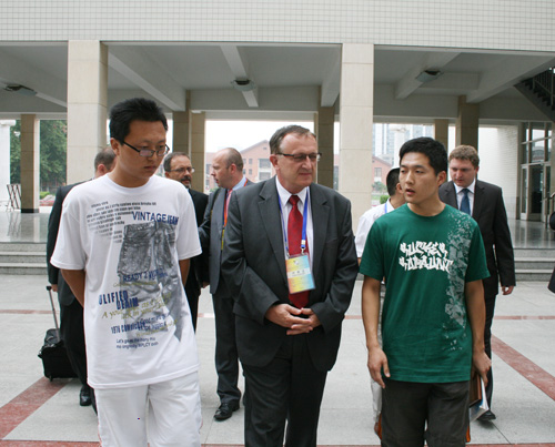 19号晚上九点半,当接送参加2010国际采矿论坛波兰与会人员的专车到达淮南时,从车上首先下来的是一个身材魁梧的波兰男子,他微笑着对每个人说:“Nice to meet you !”然后就会给每个人一个热情的拥抱。他就是波兰AGH理工大学校长代表斯塔尼斯瓦夫•纳乌拉特教授。